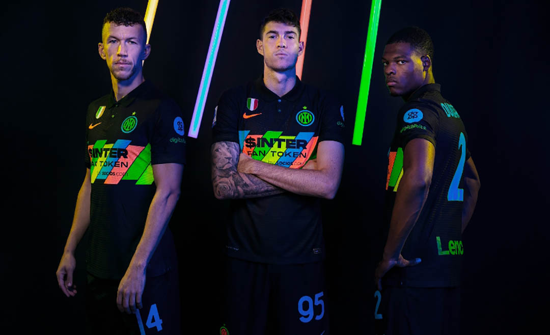 Vista-se como um verdadeiro torcedor da Inter de Milão com a nova camisa da equipe italiana, o manto da temporada 21/22 possui predominantemente a cor Preta.