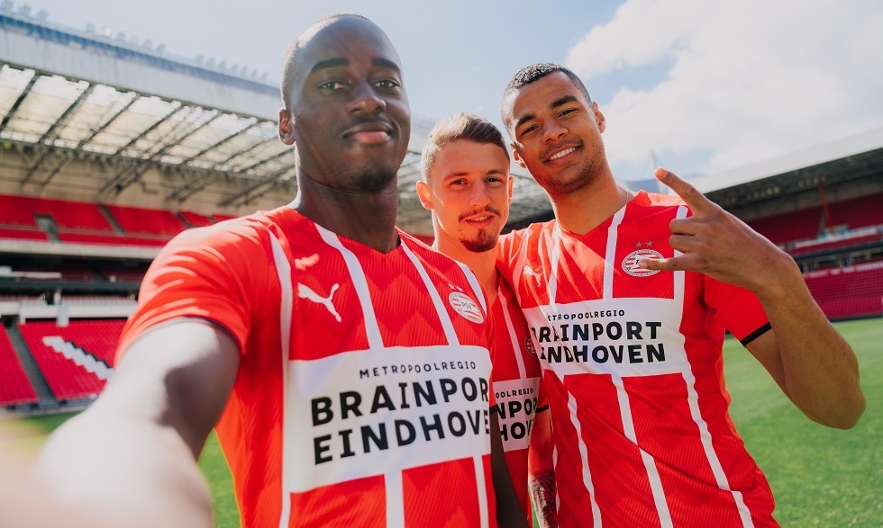 Vista-se como um verdadeiro torcedor do PSV com a camisa da equipe holandesa, o manto da temporada 21/22 possui predominantemente na cor Vermelha.